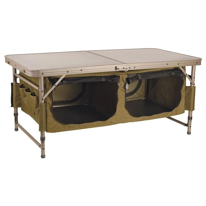 De Fox Storage Table is de 2-in-1 oplossing die een grote tafel combineert met opslag eronder. Perfect voor het opbergen van je kookgerei en materiaal. De storage table is perfect te gebruiken in grote bivies en/of kooktenten/social shelters. Hij is compact en is licht van gewicht en is makkelijk te transporteren. Zie meer features bij de specificaties.