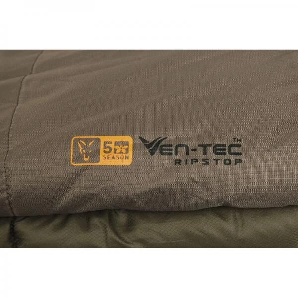 Het ripstop materiaal wat zorgt voor ademende slaapzak. De buitenzijde van de slaapzak is waterdicht tot 20.000mm waterdruk. De slaapzak is vast te zetten met een veiligheids strap. Beide lagen zijn afgewerkt met een Micro fleece voering en heavy duty Crash ritsen. Deze slaapzak is handig te combineren met de Fox R2 bedchairs, Fox Eos 2 bedchairs en Flatliner bedchairs.
