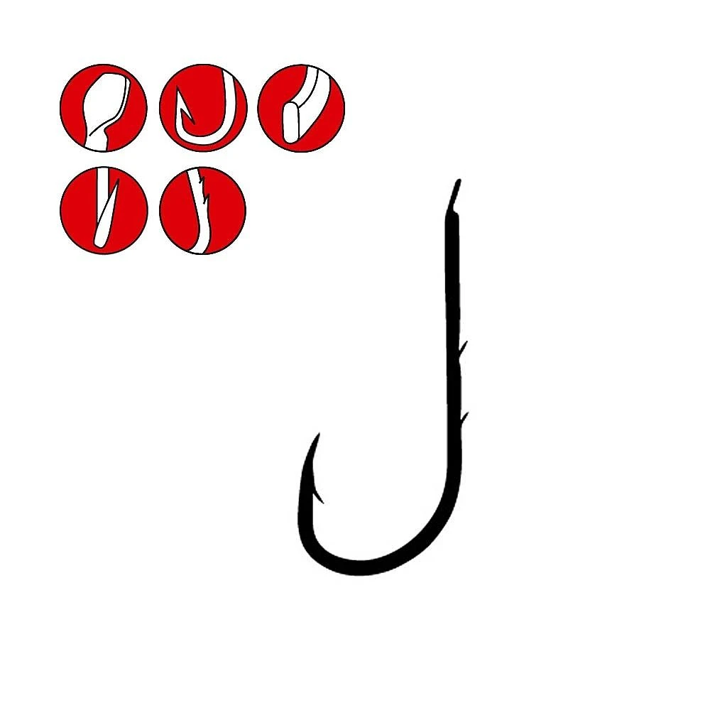 Lange steel met dubbele weerhaak houdt het aas beter in positie. Uitgevoerd met een bledje